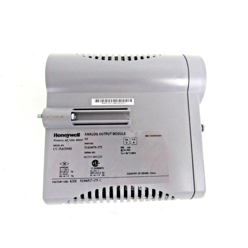 The Honeywell CC-PAON01 51410070-175 is an analog output module used in Honeywell Experion control systems. It provides reliable 4–20 mA current output signals to control devices such as actuators and indicators.